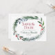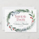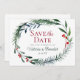 Den här vackra helgdag Save the Date-inbjudan har en vacker vattenfärgutandning av grönt gräs nål för jul. En elegant vinter inbjudan med festligt botaniskt löv som cirkulerar ditt skript. Anpassa baksidan av det här kortet med parets monogram initialer ovanför poinsettia-blomman och under QR-kodlänken för att söka efter webbplatsen med händelseinformation.
