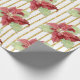 "Jul Watercolor Red Poinsettia Blommigt Löv Foliage Grey Guld Rand Wrapping Papper." Elegant röd Poinsettia-blommor och löv-löv i en halv tegel mönster över guld glitter rand, målad av internationellt licensierad konstnär och formgivare, Audrey Jeanne Roberts, upphovsrätt.