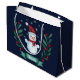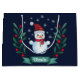 Personlig jultomte, blå presentväska med vattenfärgen snögubbe, snöflingor och vinterblommigtar. Det finns också ett område där du kan skriva vad du vill - namn, monogram eller något annat, mycket enkelt att redigera och du kan välja från många olika typsnitt, om du vill.