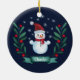 Personlig: Blåfärgad jultomatornament med vattenfärgen snögubbe, snöflingor och vinterblommigtar. Det finns också ett område där du kan skriva vad du vill - namn, monogram eller något annat, mycket enkelt att redigera och du kan välja från många olika typsnitt, om du vill.