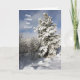 En blå himmel prickad med passerande stormmoln är bakgrunden till att ett snö täckt träd i gräs står på en koloradbergssluttning, där snö täckte träd under den aspen. Anpassa frammeddelandet och det inre meddelandet till kostym om din smak.