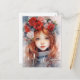 En halvbukett av röd rosa och elfenben ro med grön kraft på hennes huvud, den här söta julsagan önskar dig God jul