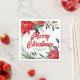 God jul i elegantens röda kursivt skript omgiven av vackra grönt gräs nål och blommor av rött poinsettia. Den här fantastiska blommigten gräns är en chic som berör din julfest napkin. Anpassa den här vackra torsken med ditt företag eller ditt företag namn mellan elegantens botaniska utformning under vintern.