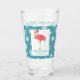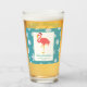 Jubel till tropisk jul. Detta ska festliga exponeringsglas för den helgdagölmuggen eller drinken får dig in i helgdaganden på din nästa julfest. Personifiera texten på detta exponeringsglas som presenterar en rosa flamingo i en santa hatt på en snowflakebakgrund.
