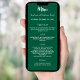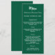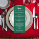 Julfest middagsmeny kort. Anpassa och lägg till ett namn/händelse, datum och menyn. En grön bakgrund, vit text.