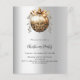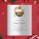 En inbjudan till jul Party. En faux silver tittar bakgrund. Dekorerad med en stor goldvintage tittar bauble. Anpassa och lägg till informationen. Svart text. 1 lakan = 1 inbjudan tryckt kant till kant.