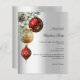 Elegant Business julfest Bjuder Inbjudan din grupp att fira julhelgen med den här snyggten och den moderna julfestinbjudan. Med en elegant faux silver tittar bakgrund dekoreras designen på ett vackert sätt med festive Red och guld baubles, greenery och en gräs-kon för en klassisk beröring. Anpassa den med företagets händelseinformation för att skapa en professionell och en sofistikerad inbjudan, perfekt för din helgdag. 1 lakan = 1 inbjudan tryckt kant till kant.