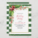 Vi kärlek denna inbjudan till julpartiet. Den har faux guld-bokstäver med festive holly över en grönt stripe-bakgrund. Perfekt för att bjuda in gäster till ditt hus den här julhelgen.