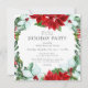 Den här helgdagarna av chic har en vattenfärgsformad blommigt ram av röda och vita poinsetter, holly och mistletoe i festive red, white och grönt på vit bakgrund. Lägg till din personlig för dina inbjudningar till företagsjulen i ram på fyrkanten. Redigera bara texten i textrutorna. På motsatt sida finns en solid röd burgundi. #christmas #helgdagar #säsong #festive #blommigt #botanical #poinsettia #mistletoe #holly #vattencolor #modern #chic #företag#företagsincitationer #inbjudningskort #christmasinvitations #korporateinationer #företagsincitationer #snyggtar #grönt #elegant #christmasmiddag #christmasparty #party #färgfull #röd #röd vit #burgundy