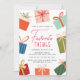 Vänner i inbjudan för att fira säsongen med den här färgstarka inbjudan till Julfesten Presenter Favorite Sak. Utformningen har en vit arrangemang av färgfyllda presentlådor fyllda med lekande bokor och rosett band, vilket skapar ett glatt helgdag. "Favorite Sak" markeras med fet röd skrift för ett modernt tryck, medan uppgifterna om party visas med klassiskt tecken nedan. I baksidan visas en solid röd bakgrund med utrymme för att lägga till mer text, perfekt för att inkludera ytterligare information om ditt helgdag-presentutbyte. Ett roligt och snyggt sätt att samla nära och kära för ett festligt party fyllt med sak till .