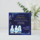 En visemisk illustration av liten ängel, tomtdockor och snögubbe-dockor + glitterstjärnor och snöflingor + rustik blå bakgrund på inbjudan till Julfest av anpassningsbar. (Kontakta ujean4791@gmail.com för anpassningsbar och/eller samordnande frågor.)