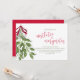 Mistletoe greenery sött och modernt tema för Julfest... där vita bär är fastbundna i ett rött band som är kapslat vid en dörr och väntar på att de ska stå under. Den här designen har jultomte, elegant grey löv bladverk, vattenfärgad julfest, små, minimalistiska, minimalistiska, kalligrafiktexter för trendig snyggt, typsnittstext, botaniskt frestigt rött band, inbjudningar till julfesten, familjerelfirande firande, grönt god jul mistletoe och margaritoe som helgdag för drinkar.