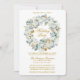 Julfesten Vattenfärgad Blommigt Dusty Blue Guld Inbjudningar