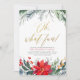 Vänner eller kolleger från inbjudan för att fira säsongen med elegantens julfest kort. Utformningen har "Åh, vilken roligt!" i vackert skript i guld, med dina party-detaljer nedan i enkel typografi. Texten är framskriden av en handmålad gräns av fir, gräs, vinterbär, lush grey och en röd poinsettia-blomma. De här korten går tillbaka till en fredlig färgbild av tealfärgerna. Du kan enkelt redigera texten på framsidan med information från party!