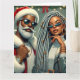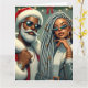 Tomten och en följeslagare är redo att fira, båda iförda stilrena jul-tema kläder. De står mot en bakgrund av julbelysning och dekorationer, redo för en festlig sammankomst.