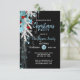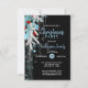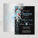 Personliga moderna julfirande-inbjudningar i Blå (turkos), svart och silverfärg. Bakgrund med trädgren, röda dekorationer och snöflingor. Redigerbar mall - lägg bara till din text. All text kan ändras typsnitt, färg och storlek. Perfekt för hemfest, kontorsfest, julfest, företags- eller någon annan vinteraktivitet.