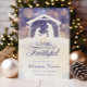 Kom alla ni trogna! Njut av denna religiösa julinbjudan. Det är det perfekta sättet att inbjuda gäster till din jul- eller kyrkofirande. Denna inbjudan har en scen med Jesu födelse med Maria och Jesus med en vacker vinterbakgrund med snöflingor.