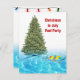 Julgran med poolvatten och poolleksak för inbjudan till julfest vid poolen i juli.