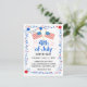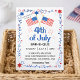 Trendig transparent Red, White och Blue Stars och stripes 4:e juli Fireworks BBQ Acrylic Party-inbjudningskort. En patriotisk festiv design för en fjärde inbjudan från juli som omfattar amerikanska Flaggor är perfekt för en bakgård BBQ party i Independence day. Du kan ändra text/teckensnitt/färg.