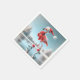 En flamingo med en julhatt och scarf glider lätt på isskal över ett fruset sjö