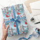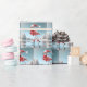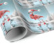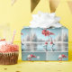 En flamingo med en julhatt och scarf glider lätt på isskal över ett fruset sjö