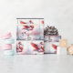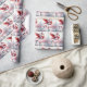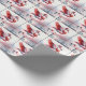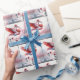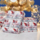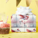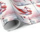 En flamingo med utspänt vingar bär en julhatt och rödscarf glatt isskridskor.