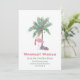 Julflamingo i tomtehatt med dekorerad palmer. Varmaste Önskningar från vårt nya hem för helgdagar Kort . Mallen är inställd så att du kan lägga till din nya adressinformation och hålla kontakten med vänner och familj under högtidssäsongen .