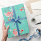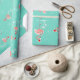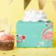 Den stilfulla designen med ett retro handlag som presenterar festliga rosa flamingos som ha på sig röda Santa hattar, stjärnor och palmträd, dekorerade med baubles som var fastställda mot en aquabakgrund. En anpassadedesign för att dig ska personifiera med dina egna text, bilder och idéer. En original- digital konst avbildar skapat av besynnerlig chic.