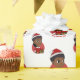 Om du slår papper med en illustration av en söt, leende afrikansk flicka med en Afro-hårstil, bär flickan en Jultomten-kostym med en röd hatt och håller en present, i en röd cirkel på en vit bakgrund, med en redigerbar textmall för ditt namn eller meddelande
