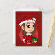 Ett vykort med en illustration av en söt leende flicka med ett långt brunt vågigt hår, flickan bär en Jultomten-dräkt med en röd hatt och håller en present. På en röd bakgrund. Gör din julhelg ännu mer speciell i år genom att låta dig själv eller dina kära vara karikerade på en mängd olika produkter! Under året har jag ritat upp åtskilliga karaktärer av pojkar, flickor och vuxnor så att alla kan hitta ett tecknade figurer som liknar hennes eller hans barns utseende. Om du vill se mer av min jul-tecknade figurer (nya läggs till dagligen) kan du titta på min butik i kategorin "jul". Om du inte kan hitta ett tecken som liknar det du tittar för kontaktar du mig genom kommentarsavsnittet eller e-postmeddelandet (radkakavalcova@gmail.com), beskriver vad du vill att jag ska rita och försöker göra det avslutat för dig så fort som möjligt. Kontakta mig också om du vill se en av mina bilder på en annan produkttyp eller ha den här produkten mer personlig.