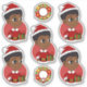 Sju vinylklistermärken med en illustration av en söt, leende afrikansk flicka med en Afro-hårstil, flickan bär en Jultomten-kostym med en röd hatt och håller en present. Gör din julhelg ännu mer speciell i år genom att låta dig själv eller dina kära vara karikerade på en mängd olika produkter! Under året har jag ritat upp åtskilliga karaktärer av pojkar, flickor och vuxnor så att alla kan hitta ett tecknade figurer som liknar hennes eller hans barns utseende. Om du vill se mer av min jul-tecknade figurer (nya läggs till dagligen) kan du titta på min butik i kategorin "jul". Om du inte kan hitta ett tecken som liknar det du tittar för kontaktar du mig genom kommentarsavsnittet eller e-postmeddelandet (radkakavalcova@gmail.com), beskriver vad du vill att jag ska rita och försöker göra det avslutat för dig så fort som möjligt. Kontakta mig också om du vill se en av mina bilder på en annan produkttyp eller ha den här produkten mer personlig.
