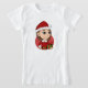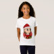 Barns T-Shirt med en illustration av en söt leende flicka med långt brunt hår, flickan bär en Jultomten-kostym med en röd hatt och håller en present