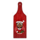 Utformad med en illustration av en söt, leende svart flicka i lycklig med kort hår, hon bär röd och vit Jultomten-dräkt och håller en present. Juldesign med röd helgdagar