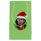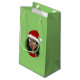 Utformning med en illustration av en vacker, ung afrikansk kvinna med vågigt hår och Jultomten, utformning av helgdagar med grönt, av Radka Kavalcova