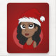 Utformning med en illustration av en vacker ung afrikansk kvinna med Jultomten, juldesign på röd helgdagar, av Radka Kavalcova