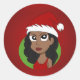 Utformning med en illustration av en vacker ung afrikansk kvinna med vågigt hår och Jultomten, juldesign av Radka Kavalcova, helgdagar