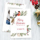 Fotokortet i god jul-familjen har en vacker vinter-bladbild i vattenfärg med ett skript och serif typsnitt i en berrytt skugga. Den här minimala, enkla och elegant designen är redot för dig att anpassa med ditt eget foto och eget meddelande. Här ändrar du färg eller behålla. Bläddra i God jul Family Photo Card Collection om du vill ha mer design.