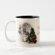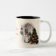 Jul-mugg med en vintage av Julgran framför ett fönster med ljus på natten. Anpassa text, fler storlekar och färg tillgängliga!