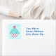 Lägg till den här söta returadressetiketten till dina julhälsningar eller koordinera med matchande inbjudningar eller julkort i den här butiken. Cupkakan har turkosbildning med röda sprinkler och har fyllts med ett pepparmyntgodis. Den pappra kakan är röd och vit pepparmynt rand. Bakgrunden är en turkosfärg struktur på vitt. Denna design är den ursprungliga konsten av Phyllis Dobbs och kommer på att samordna produkter i denna butik. Helt anpassade.