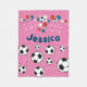 Här är en roligt som är fläkt i fotboll/fotboll. Den har en mönster av bollar, juldekorationer inklusive prydnadsföremål och snöflingor, mot en rosa bakgrund. Anpassa till valfri namn. Bakgrund och teckensnitt färg kan ändras så att de matchar det för pojkar eller flickor. Klicka bara på knappen "Anpassa det". Gör en underbar gåva till nyfödda, babyduschar eller första födelsedagar.