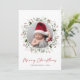 Ett enkelt, modernt julkort med ett foto omgivet av vattenfärgsutandning av vintergröna med röda bär. Anpassa med din familj namn på framsidan och Julhälsningar på motsatt sida.