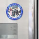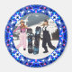 Jolly och Festive jul Photo Bild Ram Round Magnet. En färgstark, cirkelformad kylmagnet. Utformningen av ram är en geometrisk abstraktion som tar sig uttryck i traditionella festliga mönster. På vintern färger blå, rosa och vit. Byt ut fotot mot din egen för en stuckgåva till familj och vänner för att fira jul. Skölj dina Yuletide-minnen.