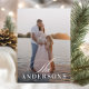 Finns även i svart text! Ditt Big Namn Calligraphy-julkort. Det här är en vacker typografi på en fullt som utfaller ett kortfoto med vita bokstäver. Den innehåller en övertäckning av gråttet för att göra området bakom de vita textbilderna bakom texten mörkare.