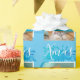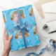 Cute och Roligt Cat Pet Typography jul Photo Wrapping Papper. Utformningen har en Julafton-text i vitt skript på ett blått färg stänk. Anpassa omslaget pappert med katten eller något foto av husdjur.