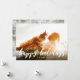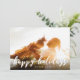 Julfoto-kort i glad helg i vitt. Ditt foto på baksidan eller den aktuella baksidan av mönster. Snygg Calligraphy-skript stil. Lettrande stil. Stor fotodesign, hand plockade-baker mönster.