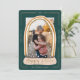 Unikt, modernt och magiskt, modernt helgdag för julfoto i snö som ska skickas till din familj och dina vänner i julhelgen. Utformningen har ett unikt foto ram med ett modernt regnbåge i rand snö i ram. "Lycklig Ställe" visas i ett elegant faux guld-skript inom snö-jordbasen. En enkel modern faux guld gräns ram skapar sektioner till visningen året om, Julhälsningar och namnteckning familjen. Enkla vita stjärnor och fallande snö täcker över fotot för att lägga till en skugga och ett magiskt utseende. Den omvända sidan har en kompletterande modern utformning med flera färgader och guld rand. Alla teckningar och illustrationer är handritade originalteckningar i Moodthology Papery.