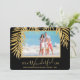 De fina faux-fronderna guld glitter handflatan på en svart bakgrund belyser ditt favoritfoto på de här helgdag. "Det är ett underbart liv", eller vilket hälsning du vill, och namnen på grund i chic. Lägg till fler foton eller mer information på baksidan med länken CUSTOMIZE ytterligare. Välj Hög definition för bästa kvalitet. MERA FÄRG gjorde för dig i vår affär.