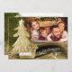En modern fotojulkortsdesign med ditt familjefoto som framsidan markerats av en guldlacy Julgran och namn. Den här designen är bakåtvänd för din anpassningsbar jul hälsning, ditt namn och ditt utrymme för din handskrivna personliga anteckning.