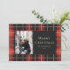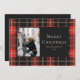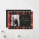 De här platta hälsningskorten för julen på 7 tum x 5 tum har platshållare för ditt favoritfoto, hälsning, år och namn, på en vacker röd, svart och guld-pläterad bakgrund.