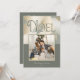 Modern jul Noel hälsning, enkel minimal design med abstrakt färgdrag i skuggor av guld på en muterad grönt. Ett fyrkantigt foto ram för ditt favoritfoto på fyrkanten, lägg till ditt namn och datum. Reverse är en komplementär grönt för rik och har dina party-uppgifter.
